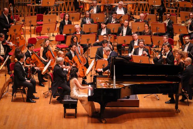 音乐会以威尔第的《西西里晚祷》序曲热烈开场。对于这支意大利著名乐团来说,演奏威尔第的作品既是回归艺术“母语”,也体现了对首次登上中国上海国际艺术节舞台的重视。在哈丁的指挥下,这部充满戏剧张力和优美旋律的作品,凭借纯正的意大利式激情迅速点燃了现场氛围。接着,范·克莱本大赛银奖获得者、钢琴家贝亚特里切·拉娜与乐团合作演奏了拉威尔的《G大调钢琴协奏曲》。