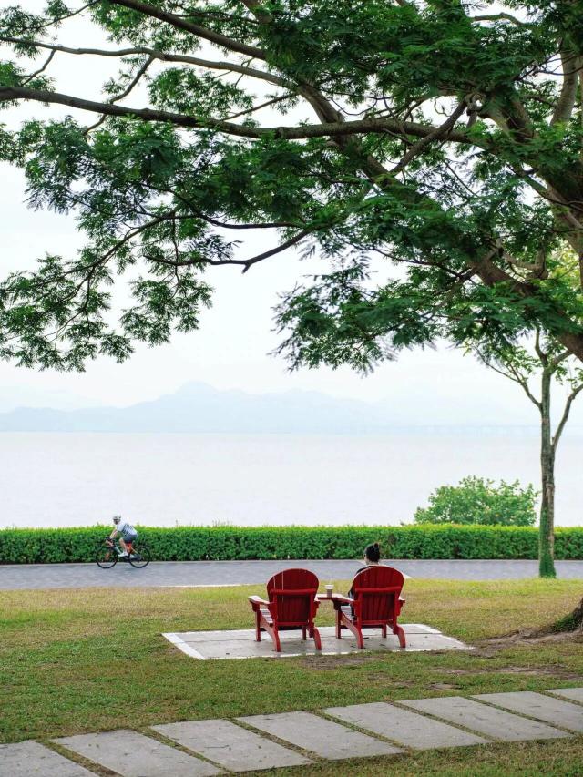 公共阅读区直面大海,视野震撼