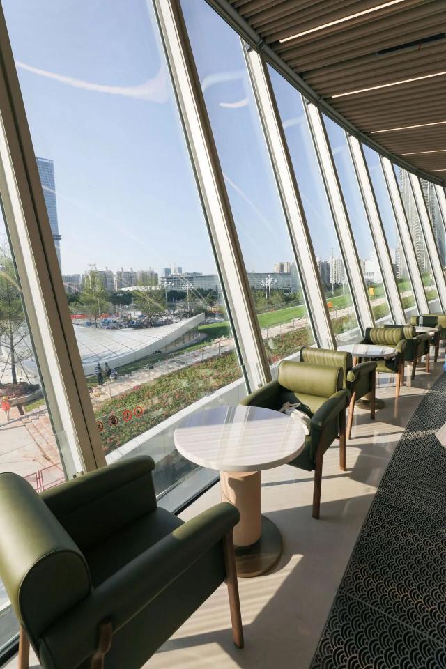 设有咖啡厅、图书馆与观景台