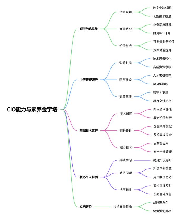 第三,顶层的战略与商业思维,这是CIO区别于传统IT经理的核心,确保技术投资与业务目标对齐。在此层面CIO需具备: