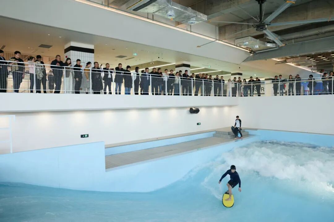 据悉,该项目总面积约6000平方米,历时36个月建成。除16米深潜水池外,还配备真波造浪冲浪池、恒温泳池及专业培训教室,灯光、水质与空气系统均达国际标准。
