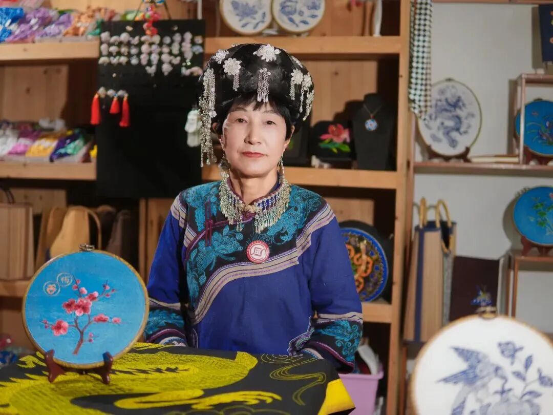 游定美,女,汉族,1956年11月出生,先后获评“中国纺织非遗推广大使”“彝族刺绣省级传承人”“优秀省级非遗代表性传承人”等称号,2024年获评“全国非物质文化遗产保护工作先进个人”。她8岁开始学习彝绣,精通65种针法,2014年创办了禄劝首个彝绣传习馆,至今已培训超万人次,带动3000余名绣娘实现就业,助力乡村妇女增收致富,用银针“绣”出了非遗传承的崭新篇章。