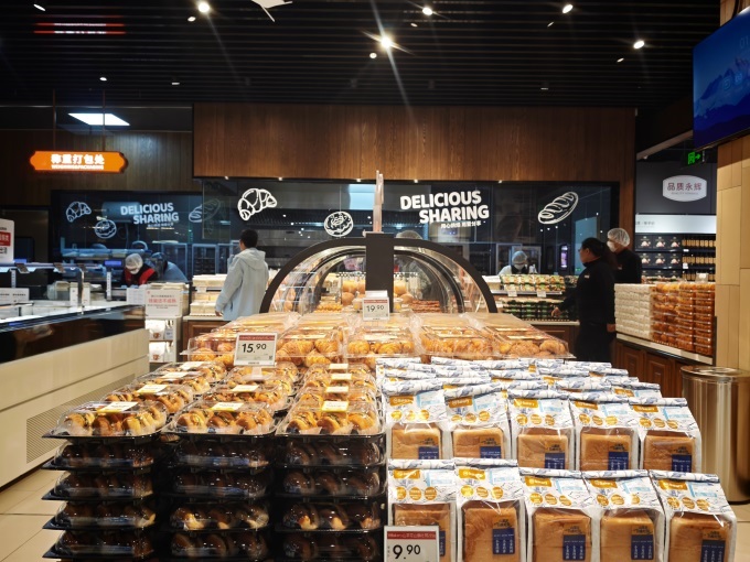 熟食板块的商品数量有200多个,在引入品牌卤味的同时,加强现场制作销售,推出了韩式炸鸡、奥尔良烤鸡、手撕鸡、锅包肉、寿司拼盘等多种风味的产品,覆盖日常佐餐和休闲场景。烘焙区引入商品91个,提高了现制现售的比例,新增了上海老城隍庙和四川非遗糕点等特色品类,融合传统与创新,打造区域烘焙新热点。