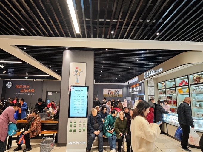 服务升级是此次改造的另一大重点。门店新增了顾客休息区,配备了身高测量仪、血压测量仪、洗手池、直饮水和微波炉,方便顾客随时使用。考虑到携带宠物购物的群体需求,门店还特别设置了宠物安置区,提高了购物的便利性和包容性。