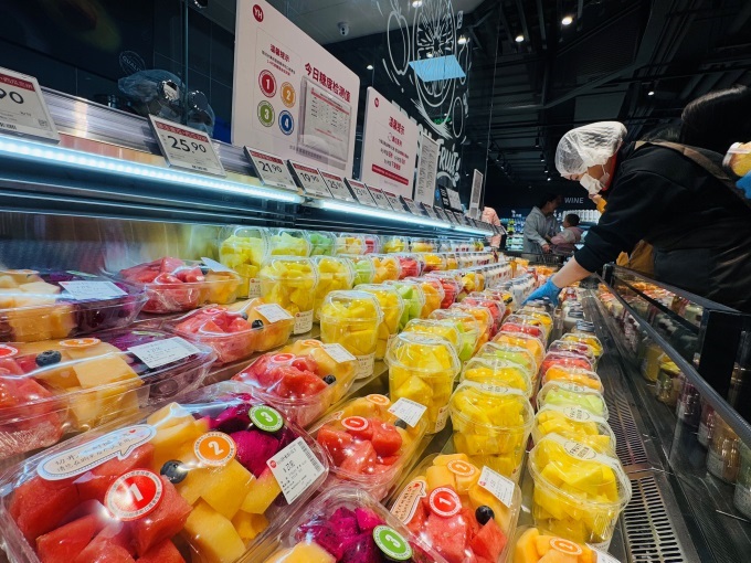 食品安全管理严格执行“468原则”:果切产品超过4小时打八折、6小时打六折、8小时下架;叶菜、烘焙、熟食、肉禽、水产等部分商品实行日清折价,不卖隔夜商品。门店还配备农残检测公示屏,服务台提供免费冰袋,全方位保障食材新鲜和消费安全。
