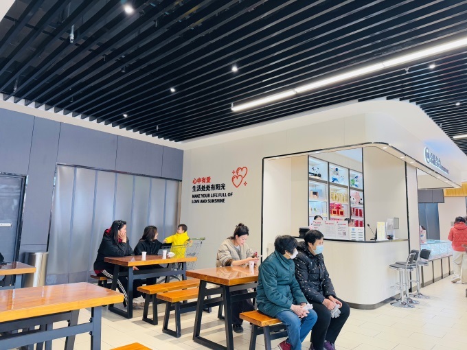 卖场环境全面升级,取消了强制动线,拓宽主通道,将货架高度统一降低至1.6米,营造出开阔通透的购物环境。便民服务区配备了身高体重测量仪、血压仪、洗手池、直饮水机、微波炉等三十多项设施,提供多种口味的暖心热茶,还设有宠物安置区和堂食桌椅,方便顾客边吃边逛,感受社区的温情。