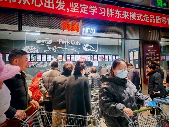 像0.59元/500g的白菜、3.99元/500g的西蓝花,保障了百姓日常餐桌的基本需求;3.99元/500g的进口香蕉、19.9元/500g的干尧榴莲,为消费者带来高品质的水果选择;9.9元/20枚的五谷杂粮蛋、5.99元/500g的猪前腿肉,是家庭高频消费的优质之选;19.9元/条的鲜活鲈鱼、9.99元/500g的冷冻海捕带鱼,让海鲜成为日常餐桌的常见菜品。另外,9.9元10个的小笼包、2.9元/500g的豆腐、19.9元8个的双拼瑞士卷蛋糕等即食、烘焙商品,为消费者提供了便捷又美味的多样选择。