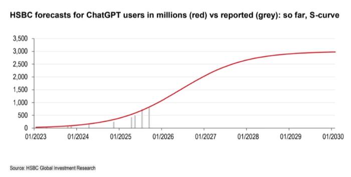 图:汇丰预测OpenAI用户增长曲线