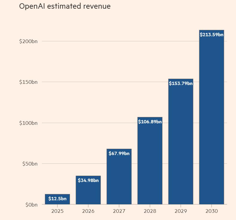 在这些乐观假设的支撑下,OpenAI的营收确实有望呈现爆发式增长态势,从2024年的60亿美元一路攀升至2030年的2135亿美元。