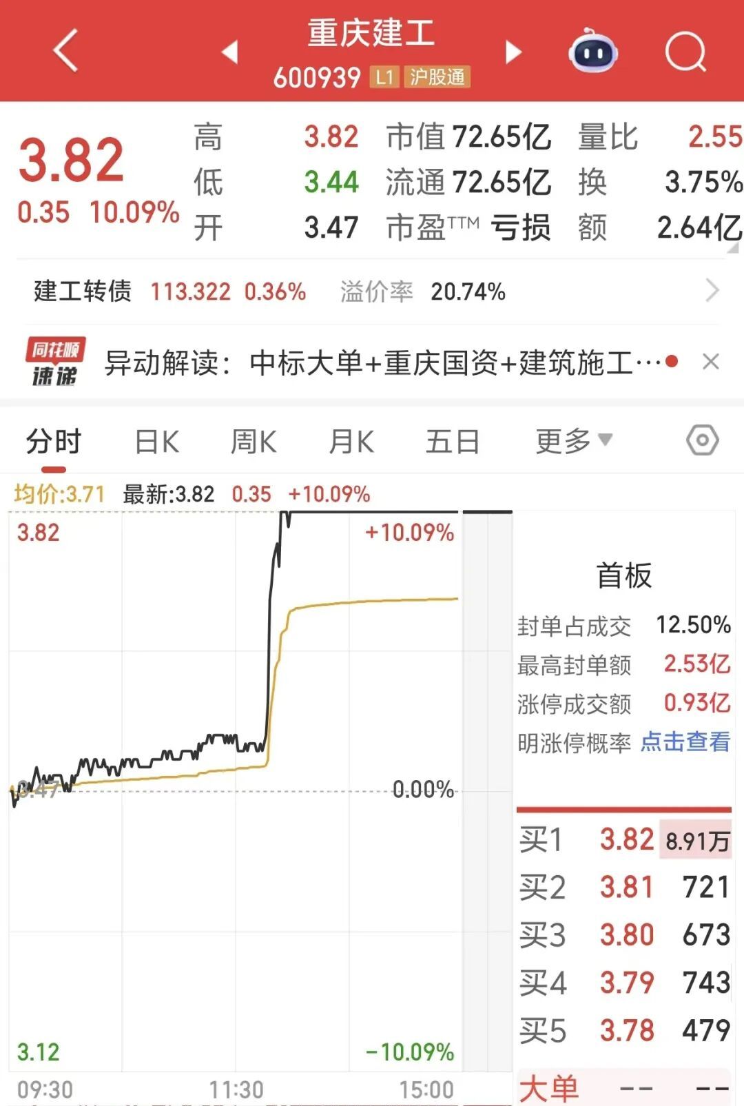 盘面上,政策利好成为重要驱动因素。重庆市人民政府印发《重庆市要素市场化配置综合改革试点行动方案》,受此消息影响,重庆本地股午后快速拉升,重庆建工直线封死涨停板。