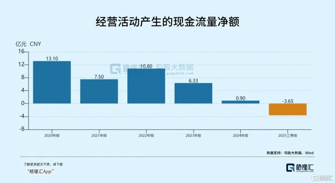 作为乙方,蓝色光标需先行支付媒体款项,客户回款慢且常需垫资,导致经营现金流持续承压。2025年前三季度经营现金流净额为-3.65亿元,呈现净流出状态。