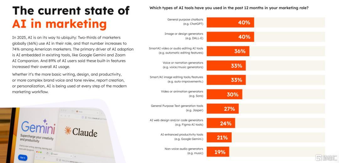 目前行业整体未做好全面迎接AI的准备。多数营销人员仅将AI用于文本创作、研究分析等基础层面,深度整合进业务流程的团队较少。这导致AI营销呈碎片化,难以构建完整数据链和实时交互,无法规模化提供个性化体验。