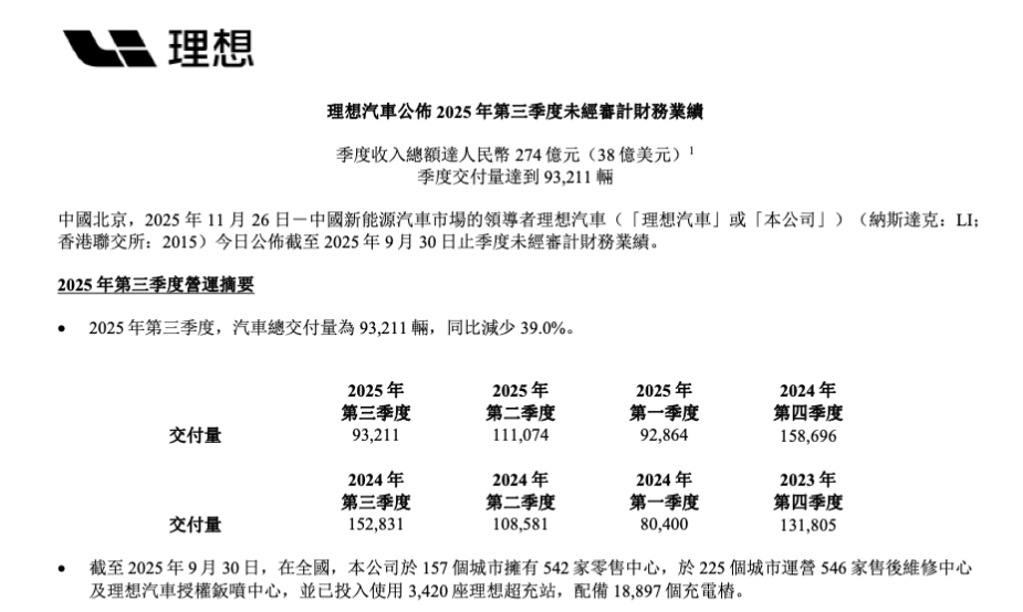 销量数据直观反映了压力:理想汽车三季度销量9.32万辆,同比骤降39%。召回带来的巨额成本叠加增长瓶颈,让理想汽车进入阶段性“水逆期”,也印证了中国新能源汽车竞争格局尚未定型——先发优势不等于长期安全,行业已从“抢争份额”的春秋争霸阶段,进入“淘汰赛升级”的战国时代。合资品牌并未放弃反击,新势力间的竞争更趋激烈,一时的盈利只是阶段性成果,唯有持续技术迭代、应对市场变化,才能在这场耐力赛中站稳脚跟。