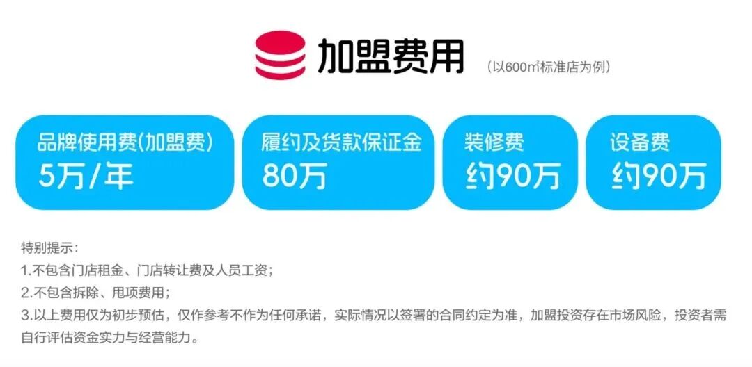 据了解,盒马为“超盒算NB”设置了较高的加盟门槛。以600平方米的标准店为例,加盟商需支付每年5万元的品牌使用费、80万元的履约及货款保证金、约90万元的装修费和约90万元的设备费,初始投入累计高达265万元,这还不包括门店租金、转让费及人员工资等持续运营成本。