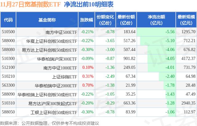 11月27日宽基指数ETF资金净流出19.03亿元