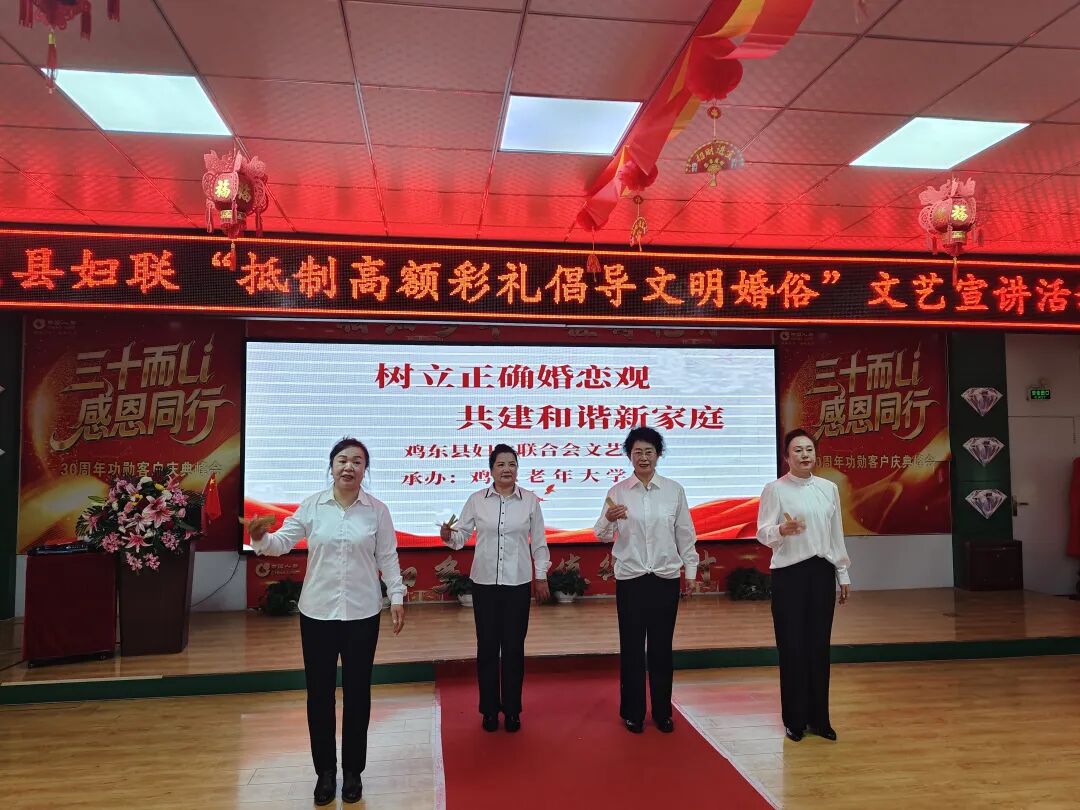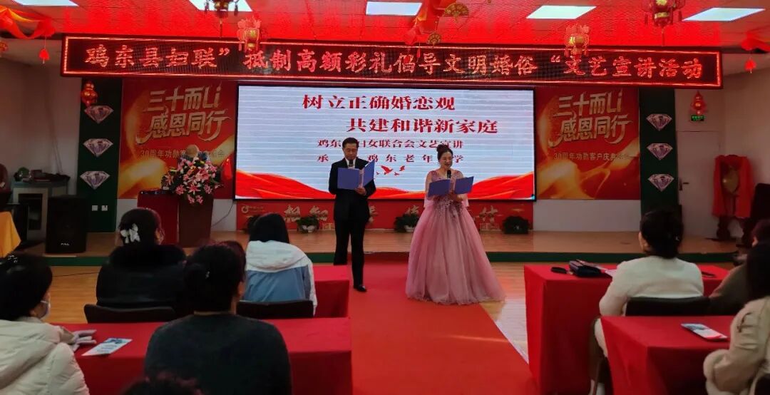 11月26日,鸡东县妇联携手县老年大学,充分发挥“五老”力量,组织开展“抵制高额彩礼 倡导文明婚俗”主题宣传活动,70余位群众齐聚一堂,在轻松愉悦的氛围中感受文明新风的熏陶。