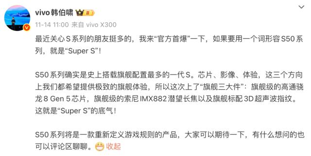 作为线下三巨头之一的vivo,其S50系列已官宣将于12月正式发布。该系列在形态上进行了调整,采用中屏标准版搭配小屏Pro mini的组合,设计和配置方面也有不少新亮点。