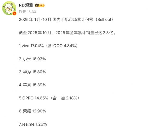 最后值得一提的是,临近年末手机厂商年度销量第一的争夺进入冲刺阶段,前十个月vivo激活数据暂列第一,但与小米差距逐渐缩小,S50系列的销售表现或将影响最终排名。