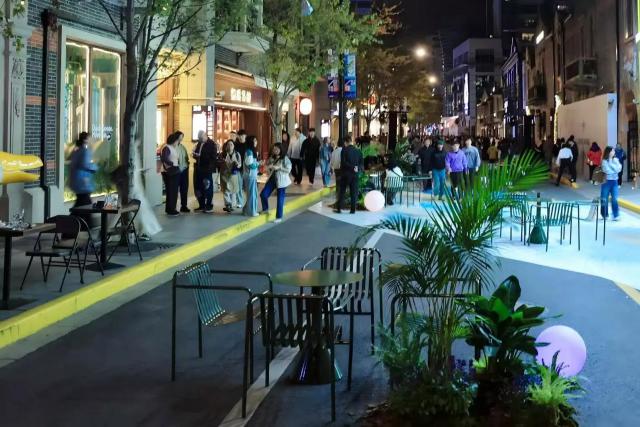 茂名北路限时步行街继续利用周五提前限行带来的"黄金四小时"优势,街区亮化持续至24点,新增灯球与光影设施,营造出更具吸引力的暖光氛围。10月底,Tiffany"Sea of Wonder瑰海奇珍"主题光影在12号楼南立面展示,迅速成为人气打卡点,进一步"点亮"张园区域。自9月起,茂名北路推出"微醺夜巷"系列活动,并探索"体育+"等夜间场景,通过热门IP合作、互动科技体验、时尚品牌联动,吸引年轻客群,为街区增添更多互动体验。依托市文化旅游局"文化配送"资源,推出"声动夜色"活动,夜间街头演艺逐步常态化,为街区注入更生动的夜娱氛围。