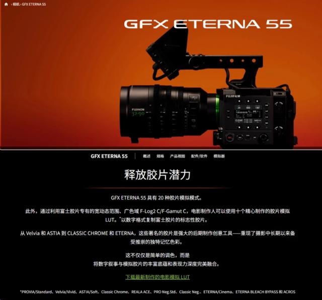 它在11月12日,将GFX ETERNA 55相机内置的所有胶片模拟LUT,免费开放给所有人下载。