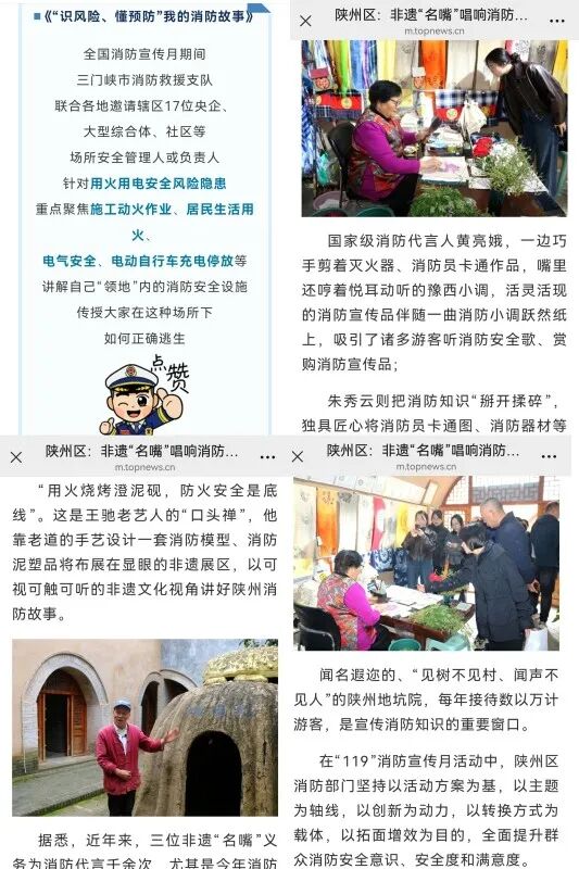 三门峡消防联动当地主流媒体与新媒体平台,开设“119宣传月”专属板块及话题,形成宣传矩阵。同时联合河南日报客户端,邀请陕州区非遗传承人黄亮娥、朱秀云、王驰三位老师,在陕州地坑院向游客普及消防知识。