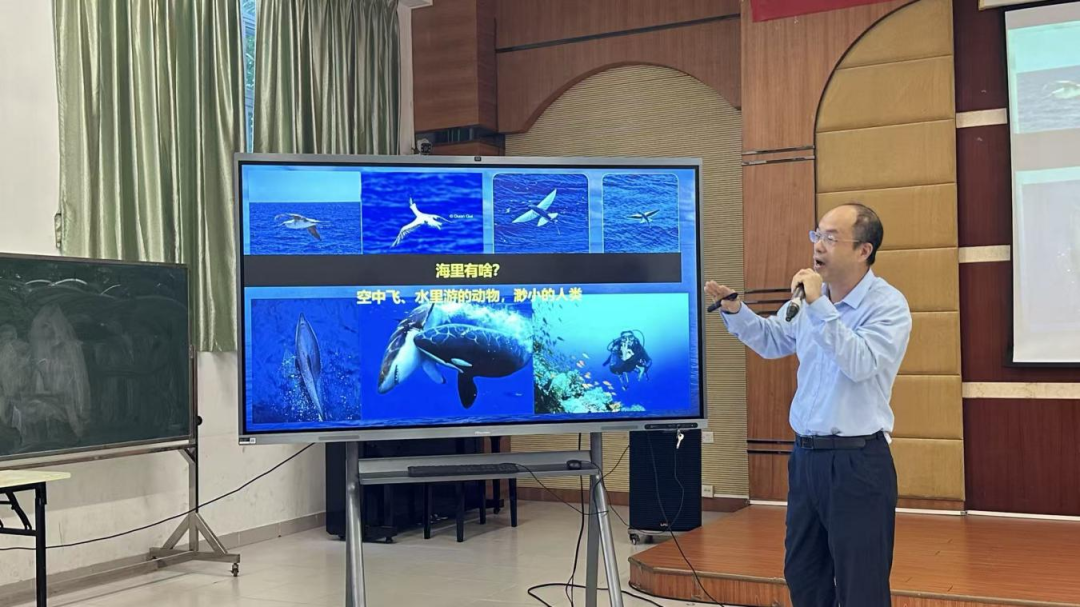 “海洋里有什么宝藏?是沉船中的金银财宝吗?”何高工的问题引发同学们热烈讨论。随后他揭晓答案:海洋真正的“宝藏”包括丰富的矿产、渔业、文化资源以及巨大的新能源潜力。
