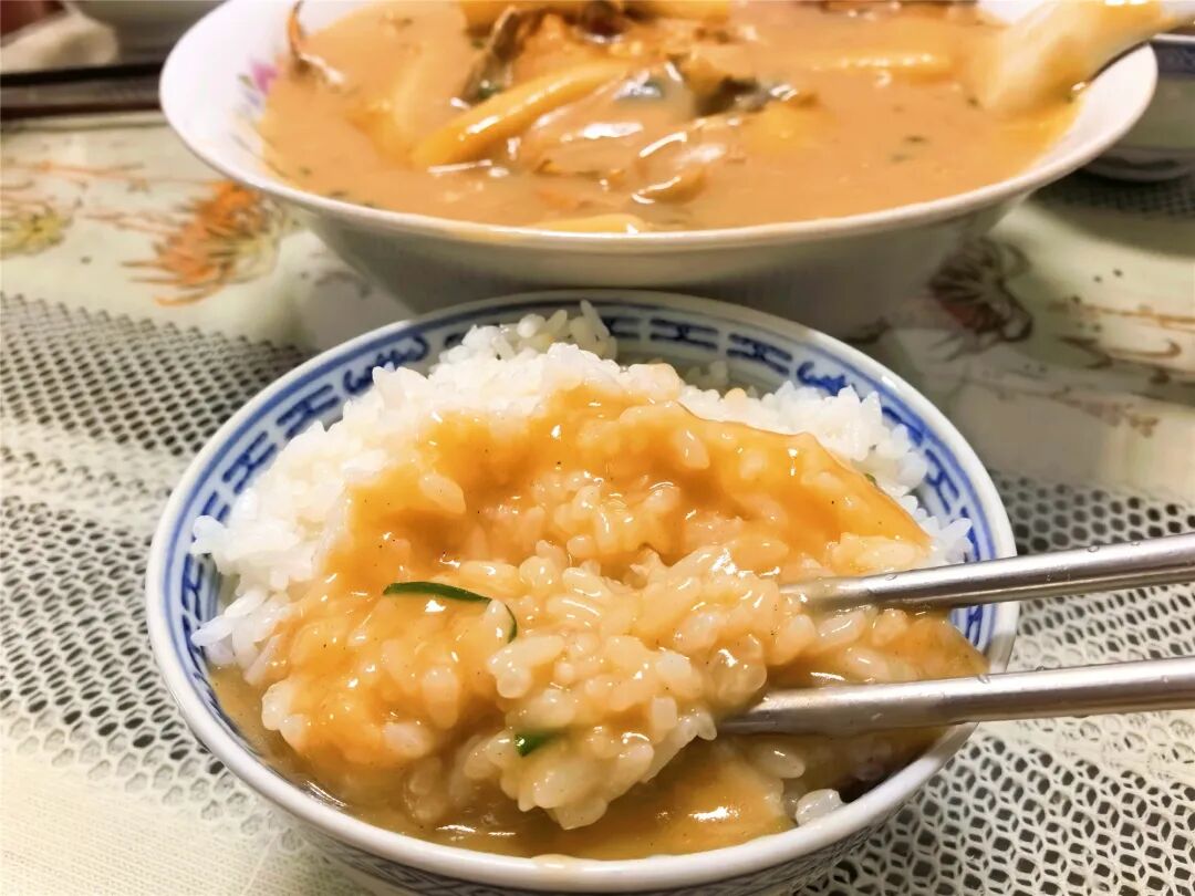 眼下正是吃蟹的好时节,本地一直遵循着“九雌十雄”的传统食谚,用家常的巧妙做法解决吃蟹的小麻烦——把雌蟹做成面拖蟹,让面糊充分吸收蟹黄和蟹油的鲜香;雄蟹则采用清蒸的方式慢慢品尝其本味,两者搭配起来刚好互补。最巧妙的是将面拖蟹的面糊淋在新煮的米饭上,不用费力拆蟹,就能一口尝到蟹的鲜香和新米的糯香。