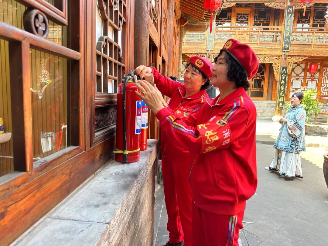 针对古城砖木结构多、用电频繁、人流密集等特点,宣传人员和志愿者逐户排查隐患、讲解安全知识。在一家民宿里,他们仔细检查灭火器的有效期和摆放位置,发现即将过期的灭火器后,及时提醒店主更换,确保消防设施完好可用。