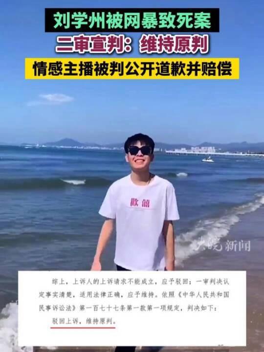 刘学州网暴致死案二审维持原判 家属将捐赔偿款盼悲剧不再