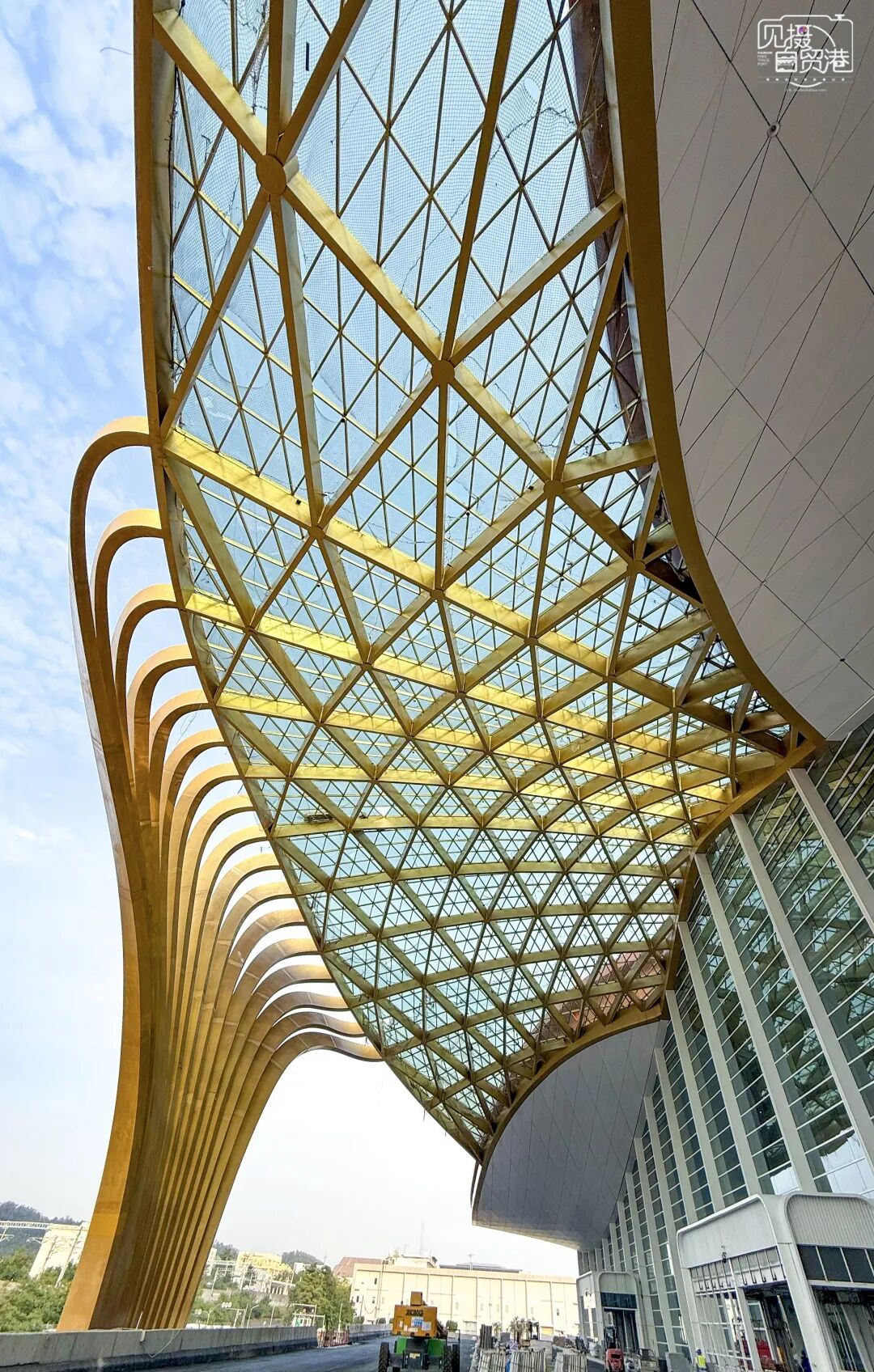 这是11月25日拍摄的三亚凤凰国际机场三期项目T3航站楼入口处的穹顶。