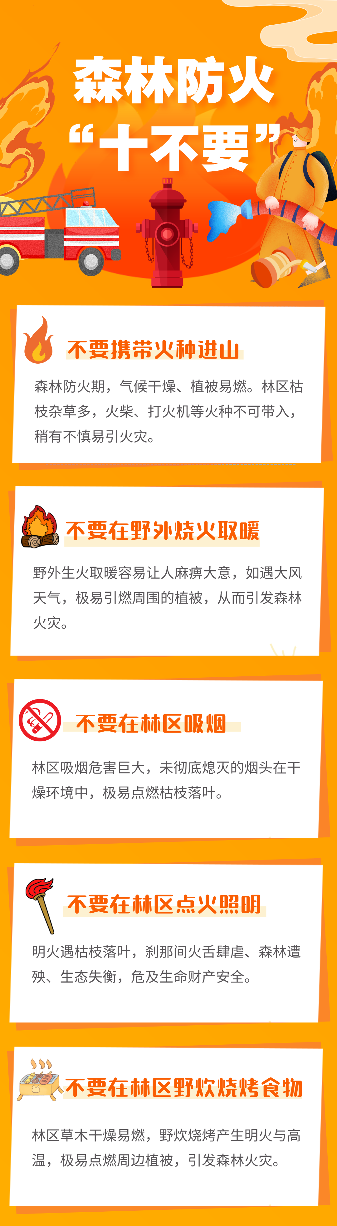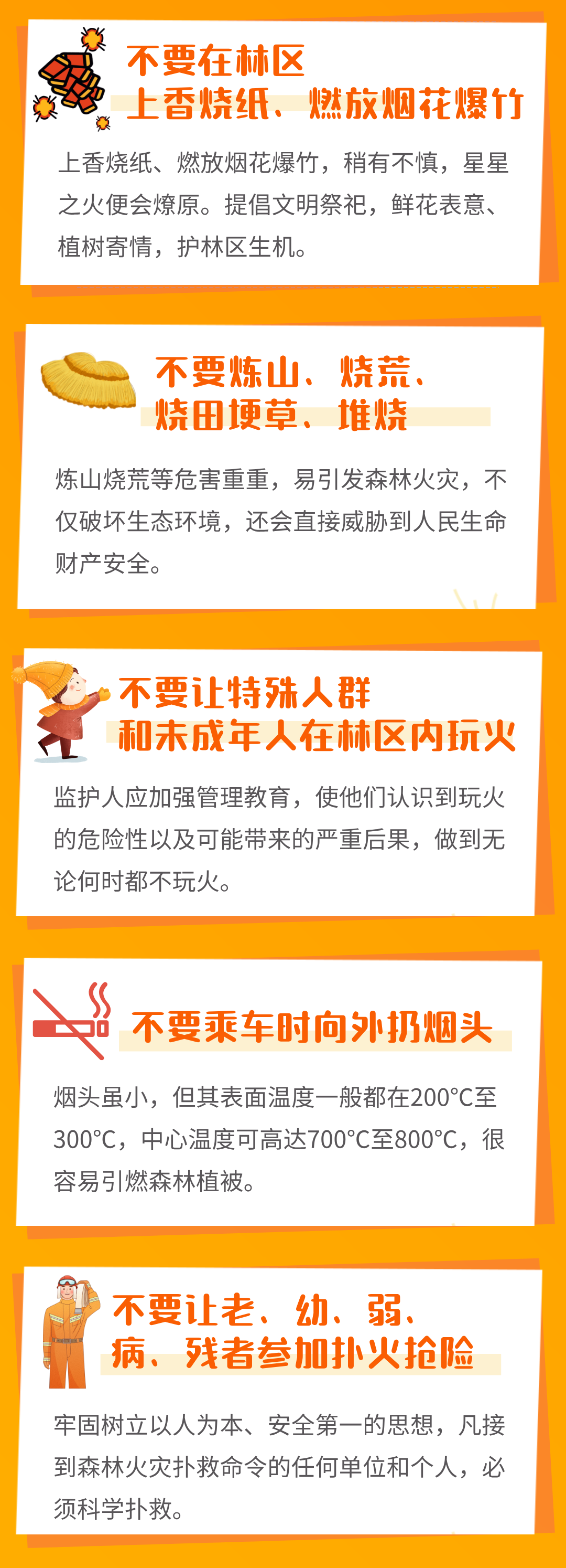 相关工作人员提醒,居民进入山林时,要多留意各种防火安全的细节,避免因疏忽引发火灾。那么,在山林中哪些行为是不能做的呢?一起来学习一下吧↓↓↓