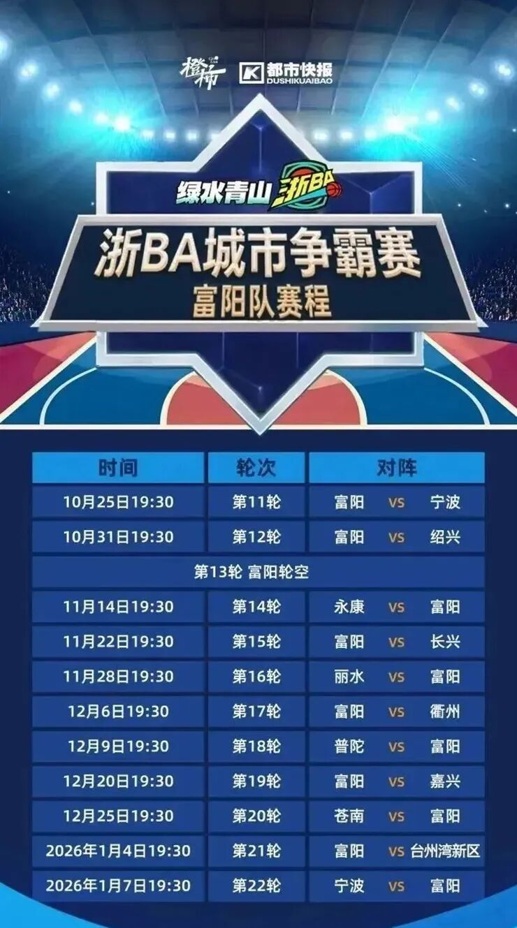 接下来,富阳队将于12月6日主场迎战衢州队。