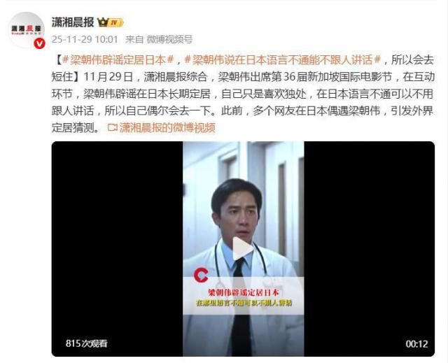 梁朝伟回应定居日本传闻:赴日只为独处,享受无需言语的宁静