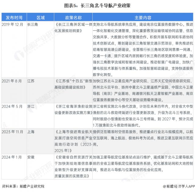 近年,长三角四省市陆续出台北斗导航相关政策。从发展重点来看,江苏侧重建设北斗产业应用基地,浙江、上海、安徽则聚焦推动北斗在船舶、航天、测绘等领域的应用。