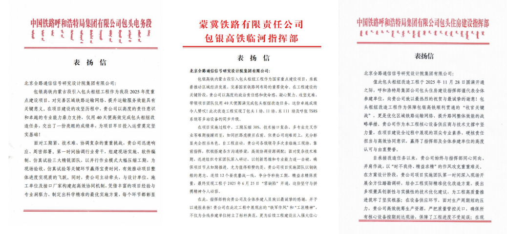 项目团队高质量地完成了联锁数据适配、列控中心改造、临时限速服务器升级等核心任务,得到了中国铁路呼和浩特局集团的充分认可和高度赞扬。