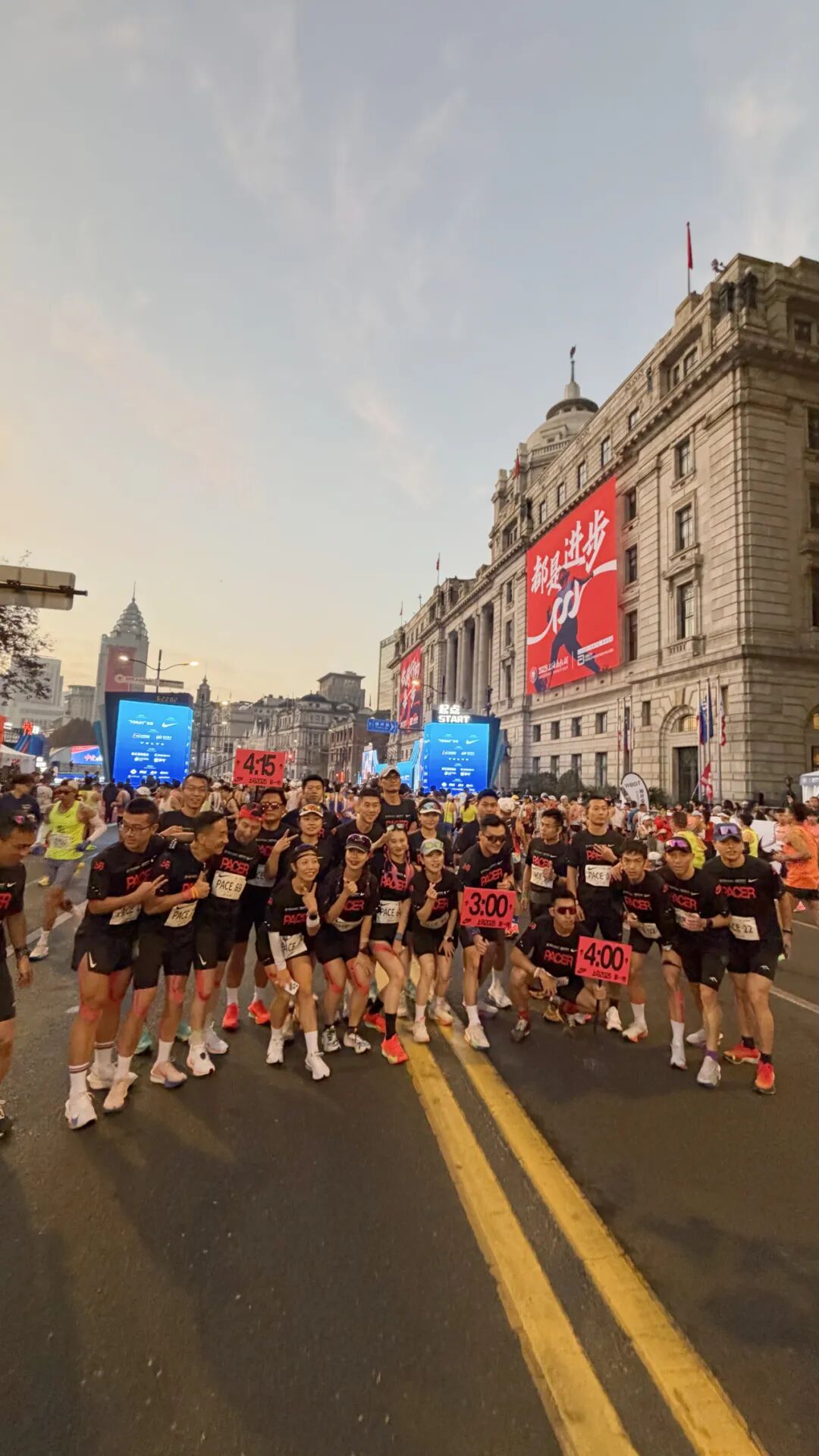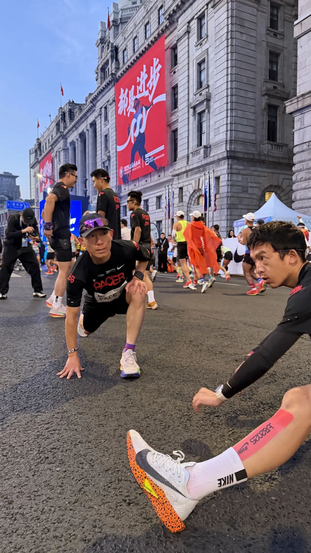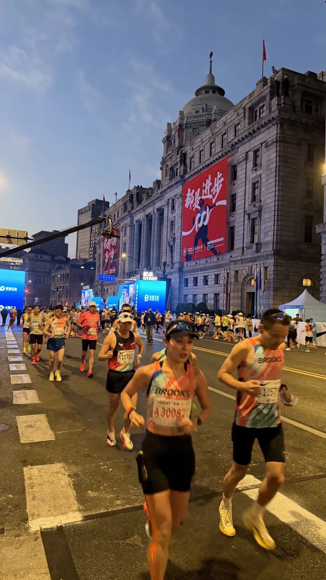 11月30日清晨,2025上海马拉松准时拉开帷幕。天还未亮,外滩金牛广场的起点处已是人头攒动,跑者们正有条不紊地做着赛前热身准备。