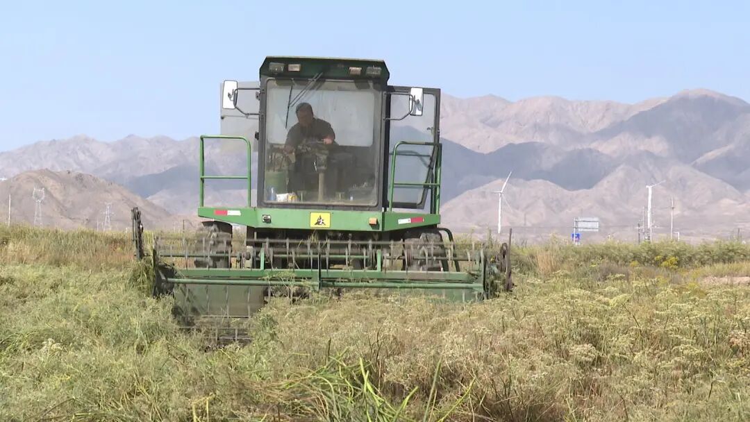 今年同样丰收的还有红山窑镇水泉子村的茴香。丰收的时候,走进茴香种植基地,浓郁的香气扑面而来。收割机在田里轰鸣作业,一片片成熟的茴香经过机器处理,均匀铺在田地上,等晾晒好后,再用机械脱籽,完成整个采收过程。