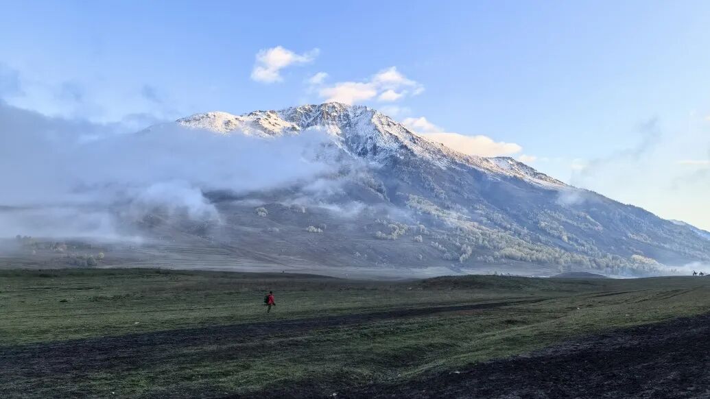 暮云凝滞,如素雪铺满天际。暮色便在这时漫上来,远山轮廓在寒霭中渐渐模糊,天地间只剩一片澄澈的沉寂。