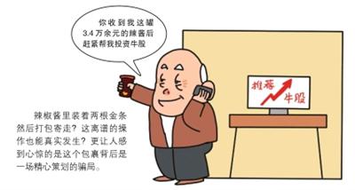 原来赵大爷在短视频平台看到“推荐牛股”广告,扫码下载炒股软件,被“内部人员”要求以邮寄黄金折现的方式充值炒股资金。他将两根共30克、价值3.4万余元的金条藏在辣椒酱里邮寄,包裹已到外地转运中心,次日即将送达。