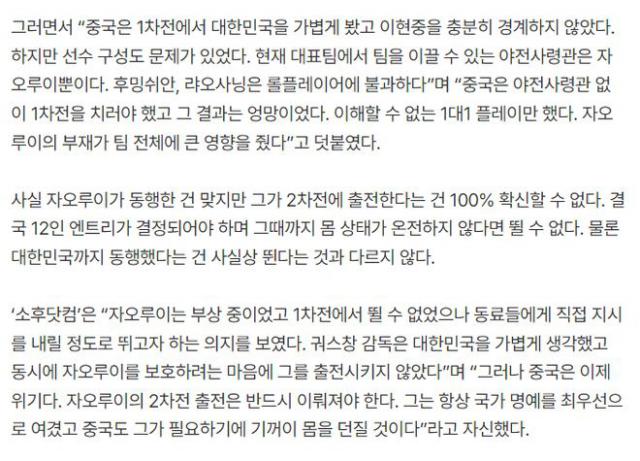 赵睿认为首战球队存在轻敌问题,对李贤重重视不足,组织串联也较为混乱。他若登场,有望改善球队细节层面的不足。中国媒体亦深知赵睿对球队的重要性,而赵睿本身更是将国家荣誉放在首位的球员,当前中国队正需他挺身而出。