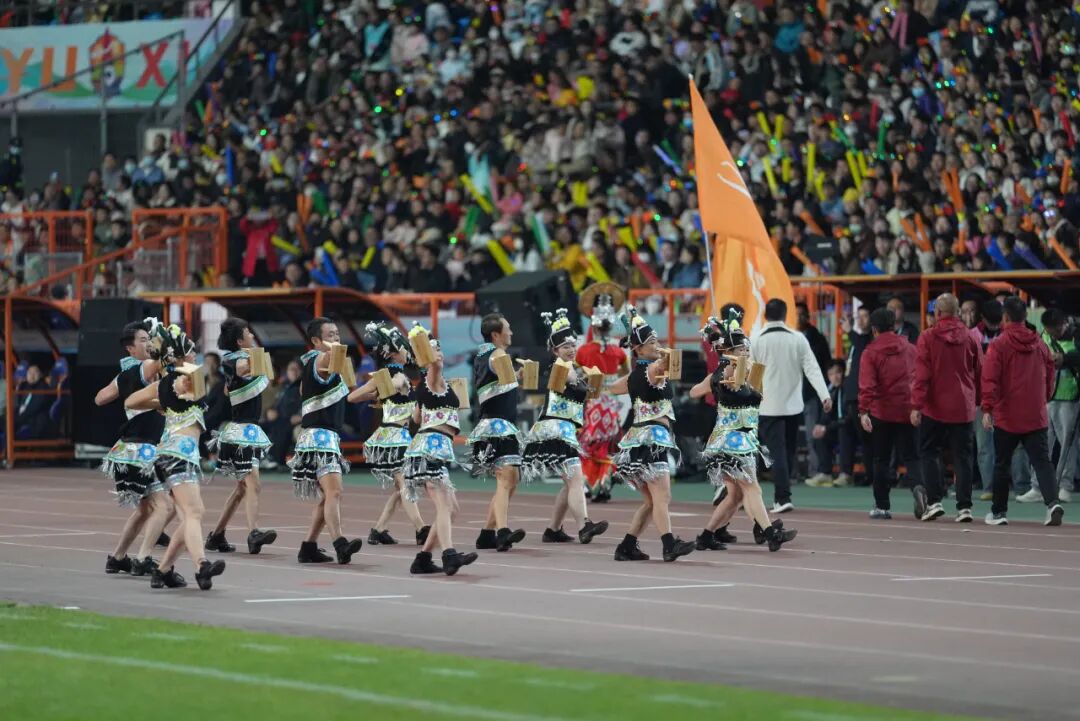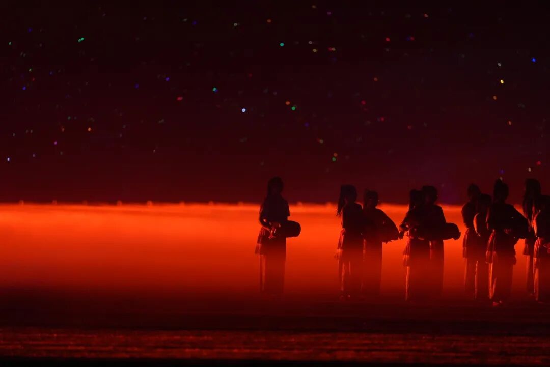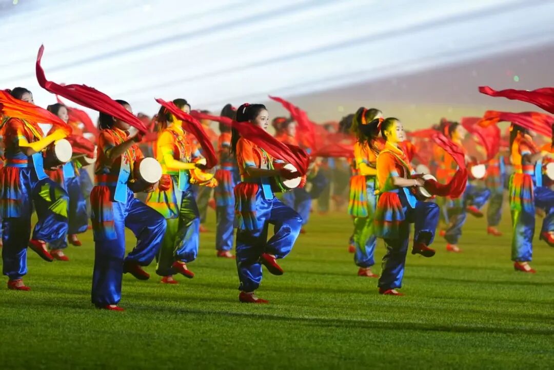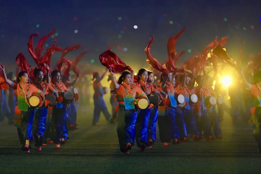 激光秀落幕时鼓声响起,鼓舞《鼓动“滇峰”》登场,激昂鼓点点燃全场热情。随后戏歌《活力玉溪》展现城市魅力,推广曲歌舞《燃动风云》将气氛推向高潮,动感旋律与绚丽舞蹈让现场成为欢乐海洋。