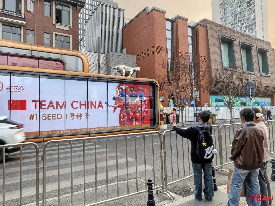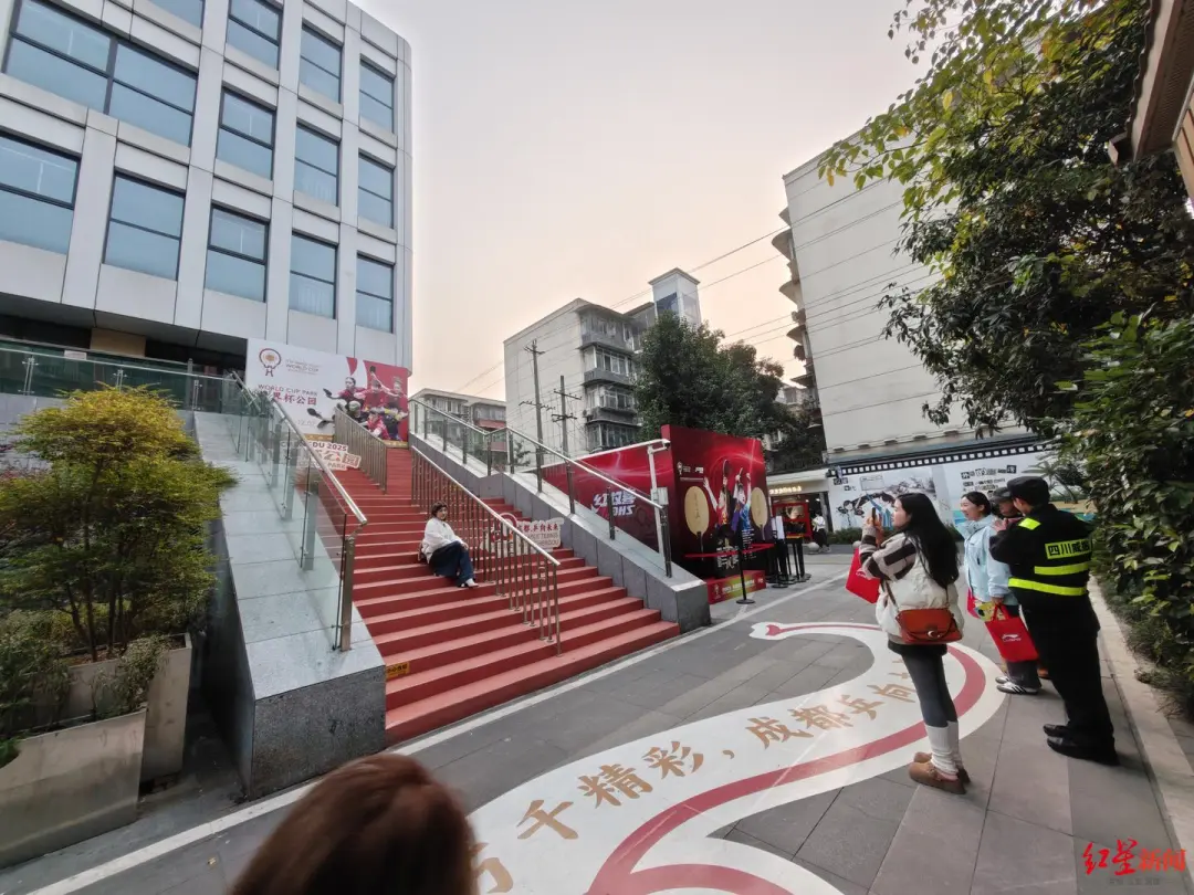11月29日下午5点多,成都学生小符在公园旁拍摄世界杯海报,她作为中国队球迷特意来到省体育馆附近,当天恰逢生日,还选了附近餐馆就餐。现场为球迷准备了打卡手册,参与AI互动、品牌展位互动、乒乓小游戏等集齐贴纸可百分百中奖,集章动线串联街区,搭配民谣驻唱、三国×乒乓主题美陈装置,构建起“可游、可逛、可玩、可购”的活力街区新范式。部分商家也推出乒乓相关优惠,如某火锅底料商家购物满88元赠限定乒乓玩偶。