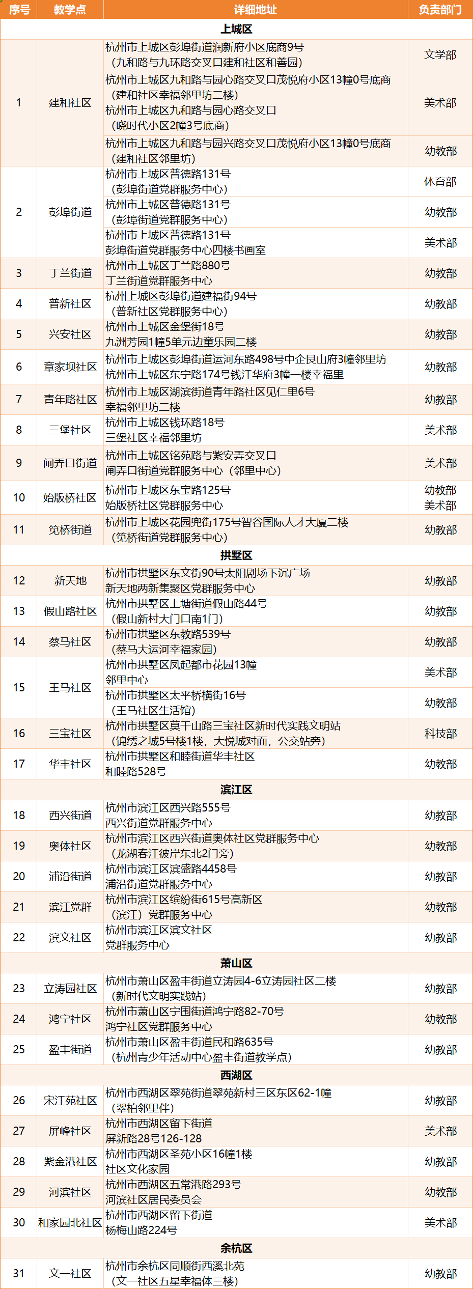 家门口青少年宫(社区点)的报名时间为11月27日(周四)至12月5日(周五),家长可通过浙里办APP(数智杭青少板块)或杭州青少年活动中心“数智杭青少”APP进行报名。该类课程报名无数量限制,即报即得,以缴费成功为准,且不占用后续大招生预约名额。