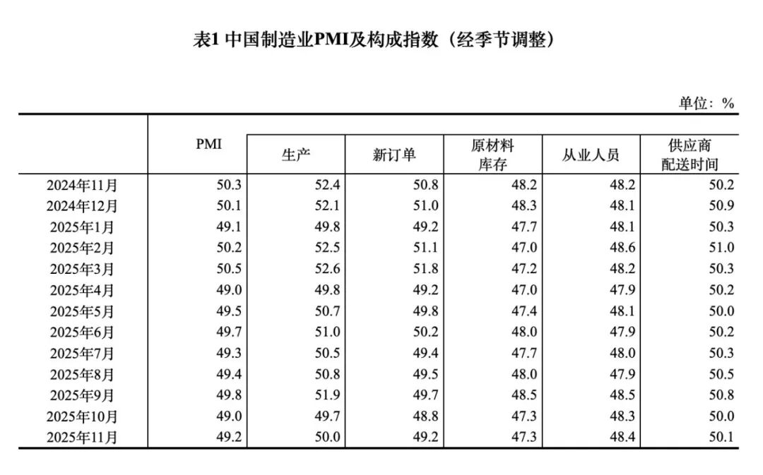 原标题:《【数据发布】2025年11月中国采购经理指数运行情况》