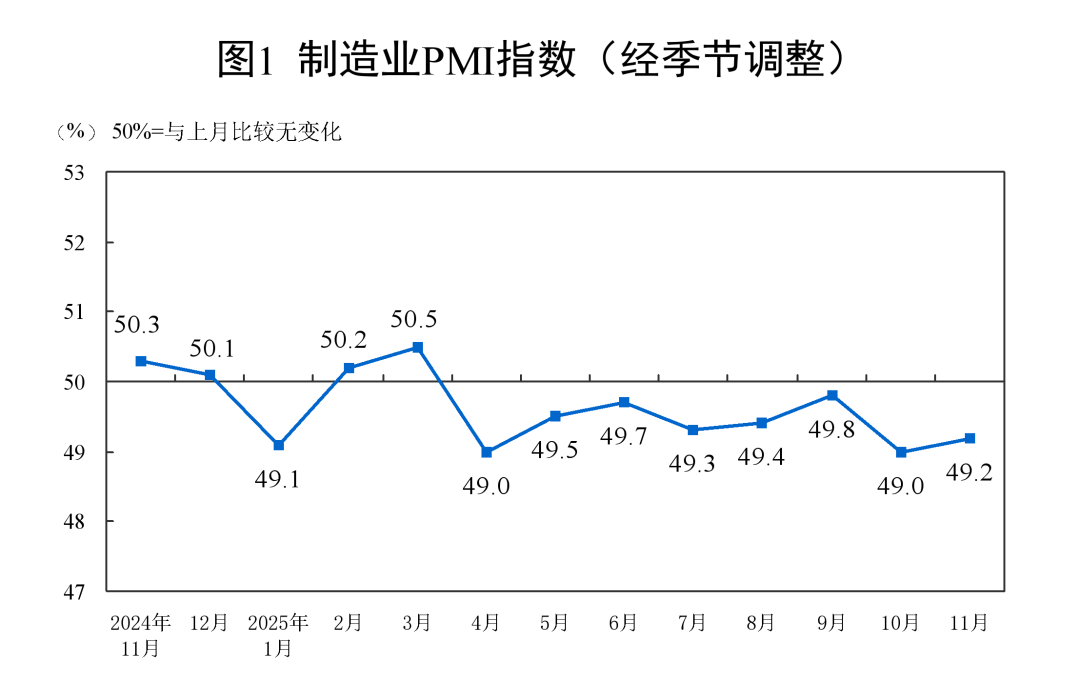 2025年11月,中国制造业采购经理指数(PMI)录得49.2%,较上月提升0.2个百分点,行业景气度呈现改善态势。