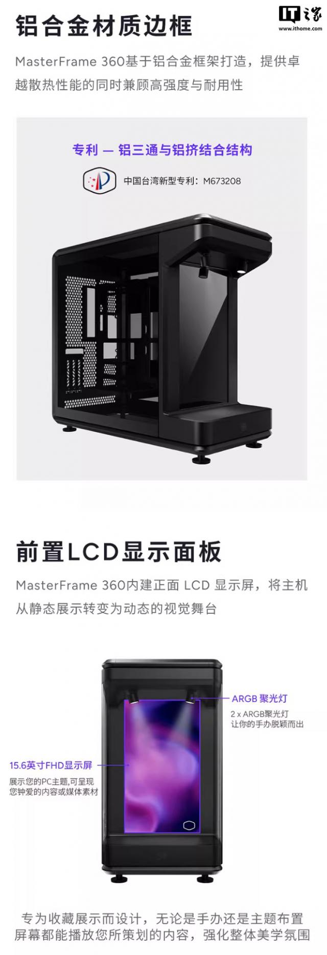 IT之家11月30日消息,酷冷至尊MF360机箱目前已正式上市,其前面板设计有一个独特的手办展示区域,能让玩家展示自己珍藏的手办,机箱整体采用铝合金框架制作,支持背插主板,首发价格1999元起。