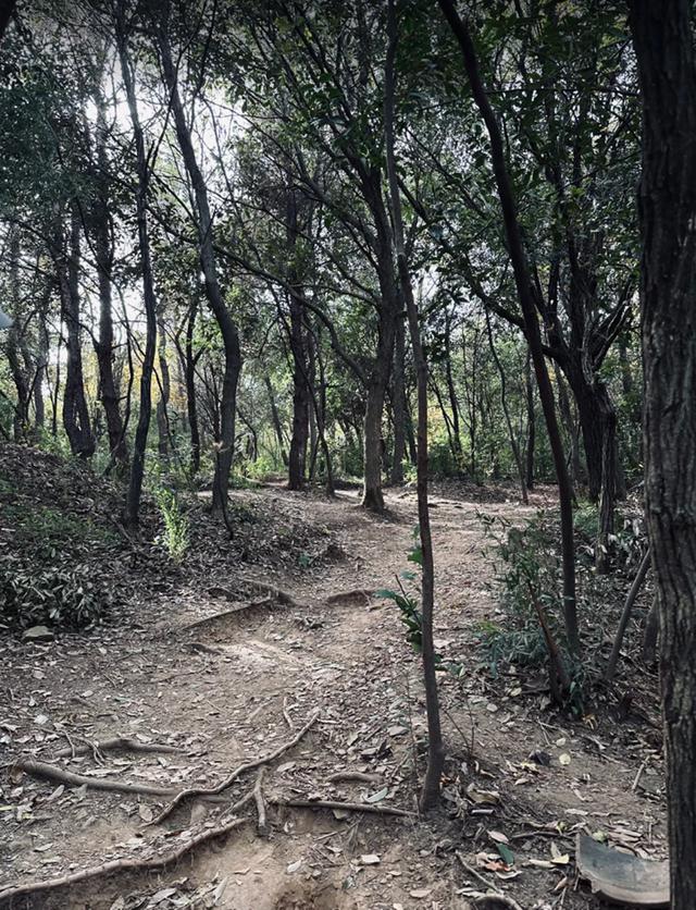 到上海山里徒步的沈佳妮分享了山中美景,山里树木茂盛,红黄叶子尽显秋意,不过都是小土路,看着不太好走。