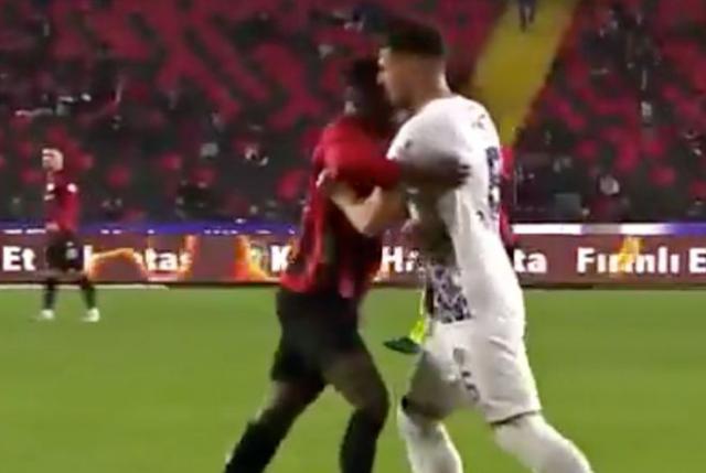 与此同时,客队埃尤普体育队的后卫对倒地的加济安泰普队球员巴杜-恩迪亚耶进行了言语上的嘲讽。恩迪亚耶无法忍受对方的挑衅,起身后便与对方球员扭打在一起。很快,双方就有5到6名球员卷入了这次冲突。埃尤普体育队的门将见状赶紧上前拉架,这也使得球门无人把守,变成了空门。