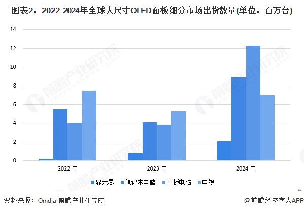 Omdia报告显示,2024年全球大尺寸OLED出货量实现爆发式增长,主要驱动力来自显示器、笔记本电脑等IT产品,电视领域也同步回暖。其中显示器品类出货量同比增幅超150%,为增长最快的细分市场。