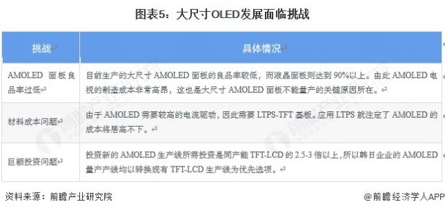 尽管三星、LG等企业在大尺寸AMOLED面板领域取得较大进展,也推出了大尺寸OLED电视,但整体而言,AMOLED市场仍处于产业化初期阶段。受技术、生产工艺及成本等因素制约,AMOLED大规模市场应用仍需较长时间。目前AMOLED技术产业化面临三大挑战,具体如下表所示: